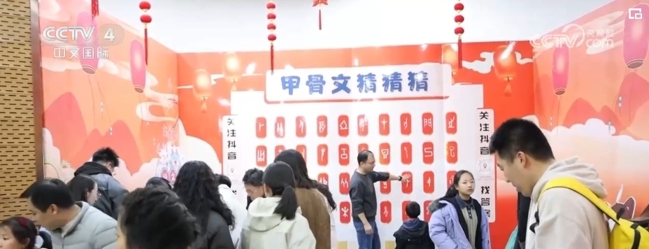 博物館內(nèi)的漢字展、漢服秀、甲骨文韻律操、文創(chuàng)集市等豐富多彩的節(jié)目,也給游客帶來了不一樣的新春體驗(yàn)和感受。識(shí)讀甲骨文,能讓大家對漢字演變過程有更加直觀的認(rèn)識(shí)和了解,在“甲骨文猜猜猜”游戲中,游客們認(rèn)真觀察、思考展板上一個(gè)個(gè)甲骨文所對應(yīng)的漢字,感受著古人的智慧和漢字的靈性與博大。