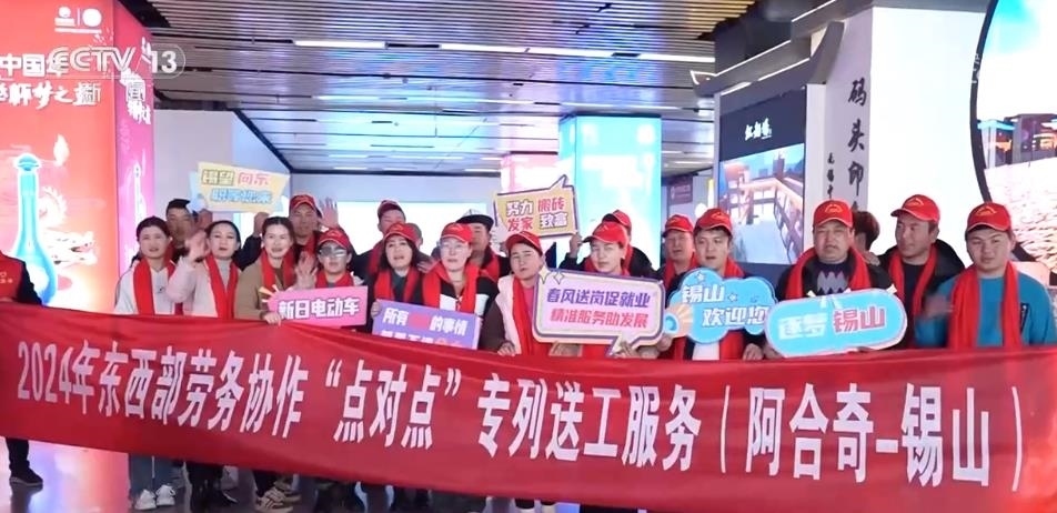 在江蘇無錫,用工企業(yè)早早來到火車站口,迎接首批新疆務(wù)工人員的到來?!包c(diǎn)對點(diǎn)”大巴車將員工直接送到企業(yè)門口。