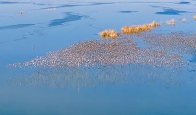 江蘇省宿遷市泗洪縣洪澤湖濕地國家級自然保護區(qū)溧河洼段,數(shù)萬只鳥兒在此棲息、越冬。近年來,當?shù)胤e極踐行“兩山”理念,圍繞洪澤湖保護治理,穩(wěn)步開展生態(tài)修復,建成“濕地自然修復水上生態(tài)牧場”10多萬畝,越來越多的鳥類棲息于保護區(qū),生物多樣性不斷豐富。周 鵬攝(影像中國)