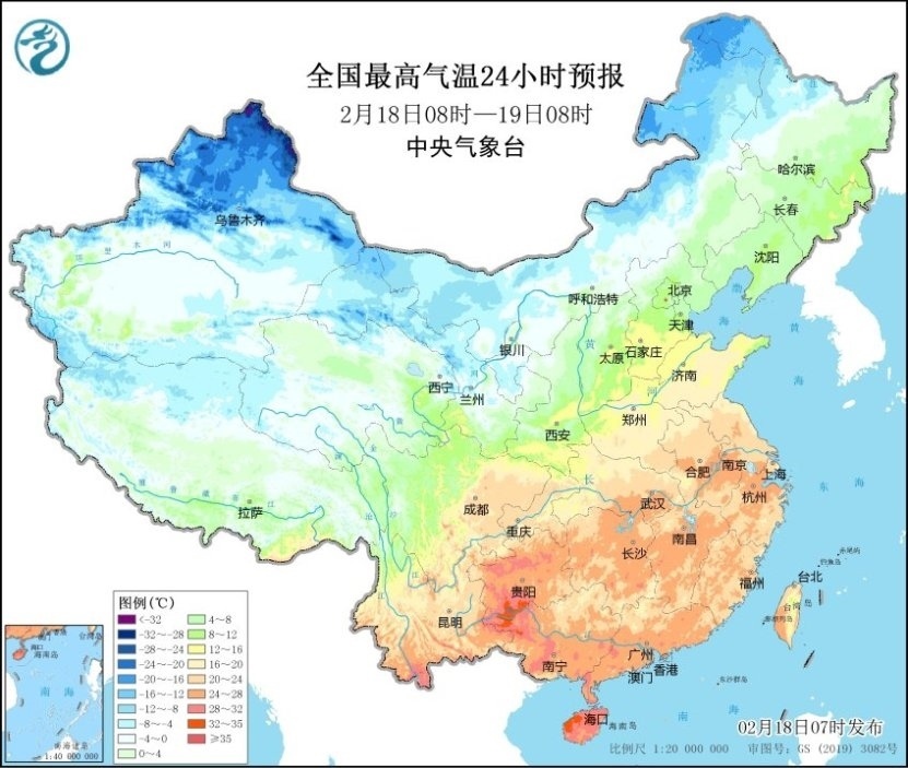 預計2月18日08時至20日08時,新疆南疆盆地、內(nèi)蒙古大部、西北地區(qū)東部、華北北部、東北地區(qū)、黃淮、江淮、江漢、江南北部等地將降溫6~10℃,其中,南疆盆地西部、內(nèi)蒙古大部、東北地區(qū)大部等地降溫12~16℃,局地可達18℃以上。