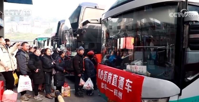 外出務工人員陳富英接受采訪時表示,這幾天不太好買車票,老家政府給我們安排了返崗專車,讓我們能夠快速抵達工作目的地。