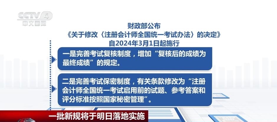 財(cái)政部公布《關(guān)于修改〈注冊(cè)會(huì)計(jì)師全國(guó)統(tǒng)一考試辦法〉的決定》,自2024年3月1日起施行。《決定》共修改2條。一是完善考試復(fù)核制度,增加“復(fù)核后的成績(jī)?yōu)樽罱K成績(jī)”的規(guī)定。二是完善考試保密制度,有關(guān)條款修改為“注冊(cè)會(huì)計(jì)師全國(guó)統(tǒng)一考試啟用前的試題、參考答案和評(píng)分標(biāo)準(zhǔn)按照國(guó)家秘密管理”。