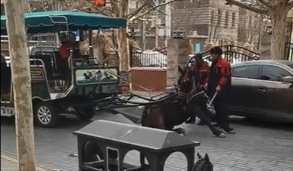·網(wǎng)傳視頻“天津五大道景區(qū)的馬累癱”,工作人員回應:是馬在耍賴,拖的都是電車,不存在累癱。