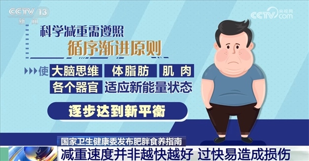 指南指出,科學減重需遵照循序漸進的原則,使大腦思維、體脂肪、肌肉和各個器官適應新能量狀態(tài),逐步達到新平衡。減重速度并非越快越好,過快的減重速度易對機體器官組織造成損傷,甚至危及生命。較為理想的減重目標應該是6個月內減少當前體重的5%—10%,合理的減重速度為每月減2公斤—4公斤。