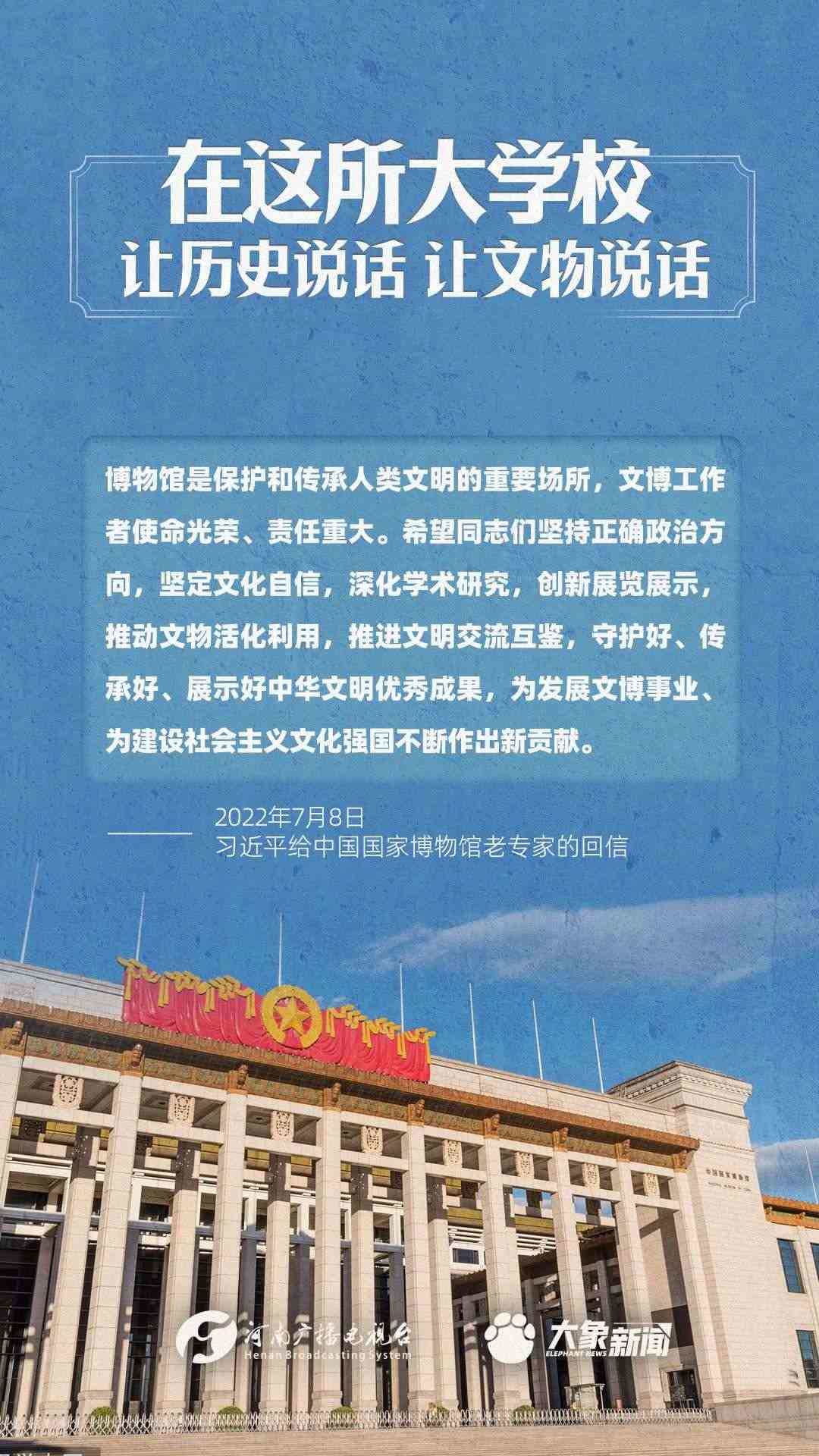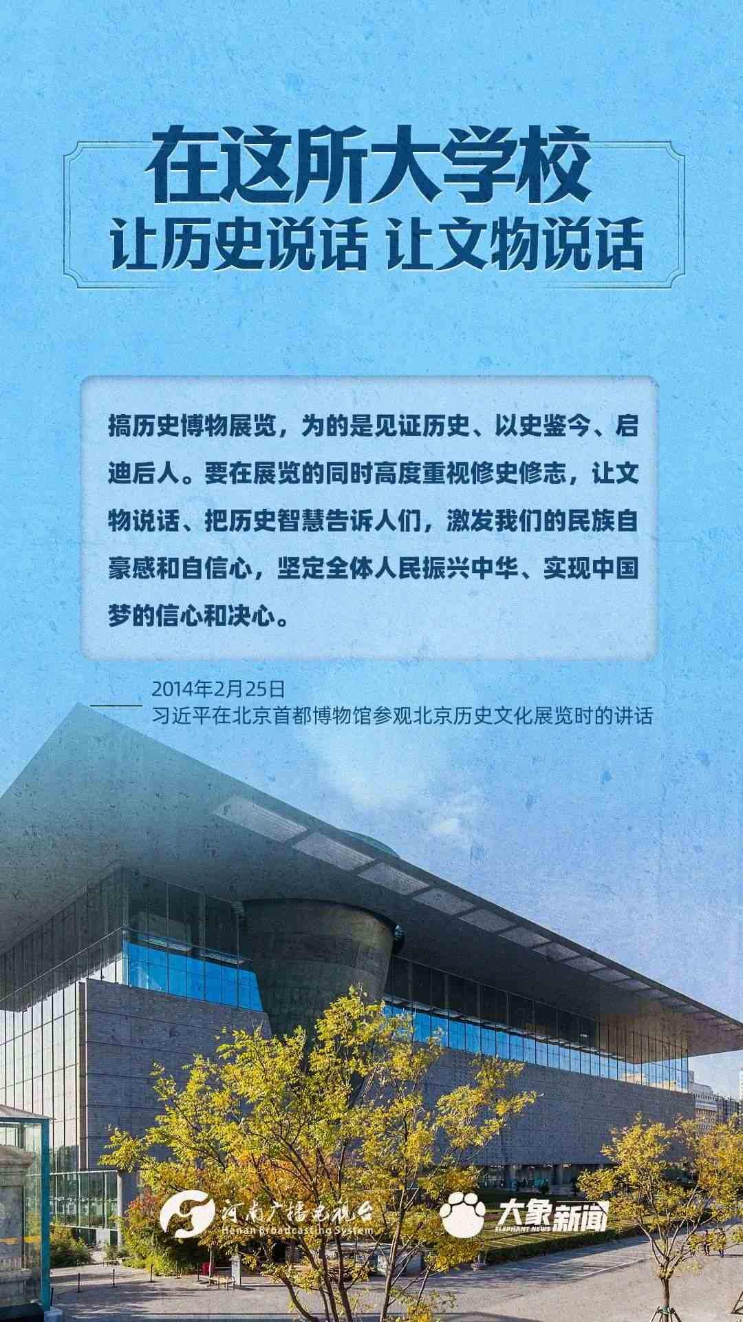 習(xí)近平總書記一直高度重視博物館工作,多次作出重要講話,強(qiáng)調(diào)“一個(gè)博物院就是一所大學(xué)校”,指出“讓歷史說話,讓文物說話”,要求“守護(hù)好、傳承好、展示好中華文明優(yōu)秀成果”等等,金句連連。大象新聞進(jìn)行了認(rèn)真梳理,邀您一起學(xué)習(xí)。
