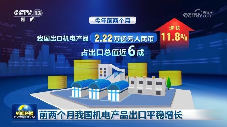 前兩個(gè)月我國機(jī)電產(chǎn)品出口平穩(wěn)增長