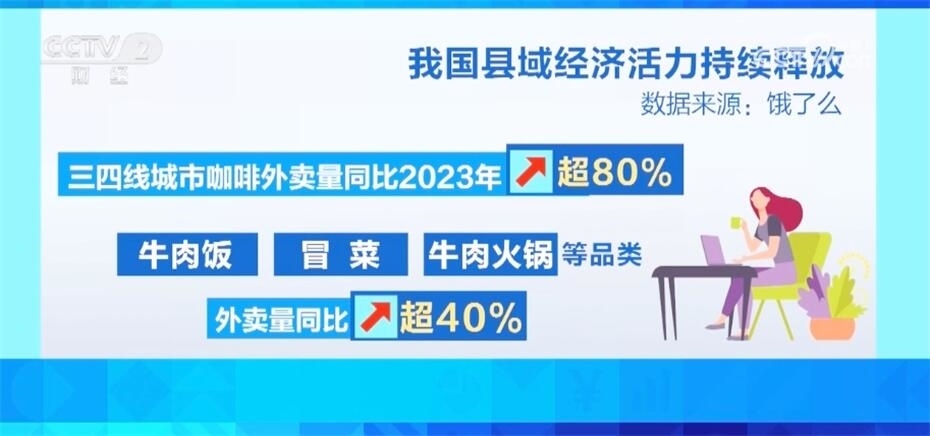 今年以來(lái),三四線城市的餐飲消費(fèi)活力持續(xù)釋放。來(lái)自某生活服務(wù)平臺(tái)的數(shù)據(jù)顯示,今年開(kāi)年后,三四線城市咖啡外賣量同比去年增長(zhǎng)超過(guò)80%,牛肉飯、冒菜、牛肉火鍋等品類外賣量同比增長(zhǎng)超過(guò)40%。春節(jié)假期期間,三四線城市螺螄粉、甜品、沙拉輕食、咖啡和奶茶果汁等熱門餐食的外賣量更是同比增長(zhǎng)超過(guò)1倍。