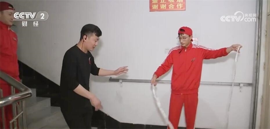 中午兩點(diǎn)左右,史昌換班,可以休息一會(huì)兒,趁著這個(gè)空檔,史昌帶上兩個(gè)徒弟去樓梯間訓(xùn)練甩面。甩面是史昌所在火鍋店吸引客流的重要業(yè)務(wù),去年史昌一共帶了3個(gè)徒弟。隨著門店生意日漸紅火,史昌預(yù)計(jì)今年得帶出9個(gè)徒弟。