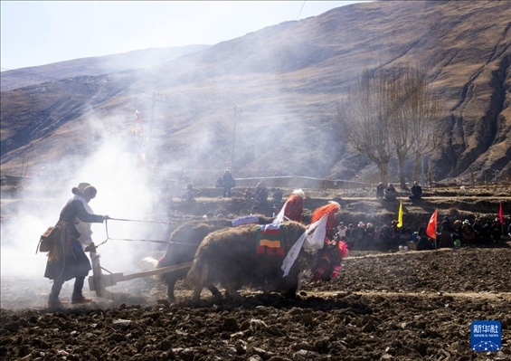 這是3月16日拍攝的西藏山南市瓊結(jié)縣加麻鄉(xiāng)加麻村的春耕儀式現(xiàn)場(chǎng)。新華社記者 旦增尼瑪曲珠 攝