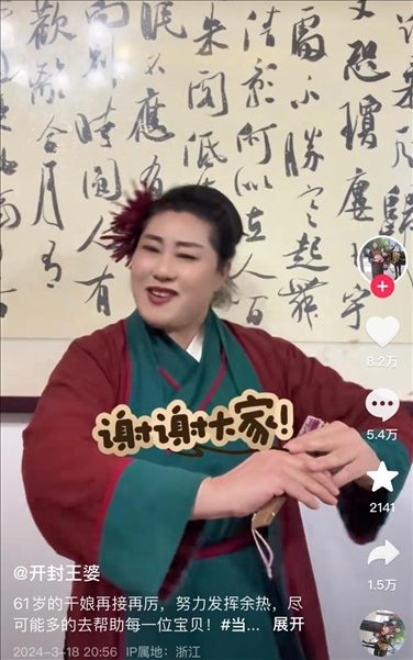 近日,河南開封4A級景區(qū)萬歲山·大宋武俠城的相親欄目“王婆說媒”走紅網(wǎng)絡(luò),主持人王婆因?yàn)榭诓藕捅硌莨αθ藲飧邼q,“王婆說媒”被網(wǎng)友稱為“接地氣版《非誠勿擾》”。在這里,單身游客可以毛遂自薦,在舞臺上展示風(fēng)采,表達(dá)對喜歡的人的情感,或者從現(xiàn)場挑選心儀的游客相親。王婆接受媒體采訪表示,當(dāng)媒婆一年,已經(jīng)促成了四五十對姻緣。
