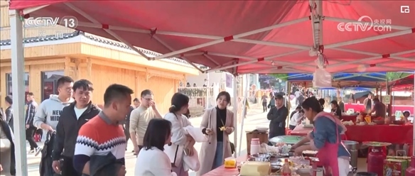 在球場(chǎng)附近,一些商鋪和攤位的“村BA”非遺集市也在3月22日開(kāi)市。廣大球迷和游客可以在比賽間隙,就近品嘗來(lái)自貴州各地的美食,感受豐富多彩的非遺文化。集市還專(zhuān)門(mén)為附近村民預(yù)留了30個(gè)攤位,幫助他們?cè)诩议T(mén)口創(chuàng)業(yè)、就業(yè)。