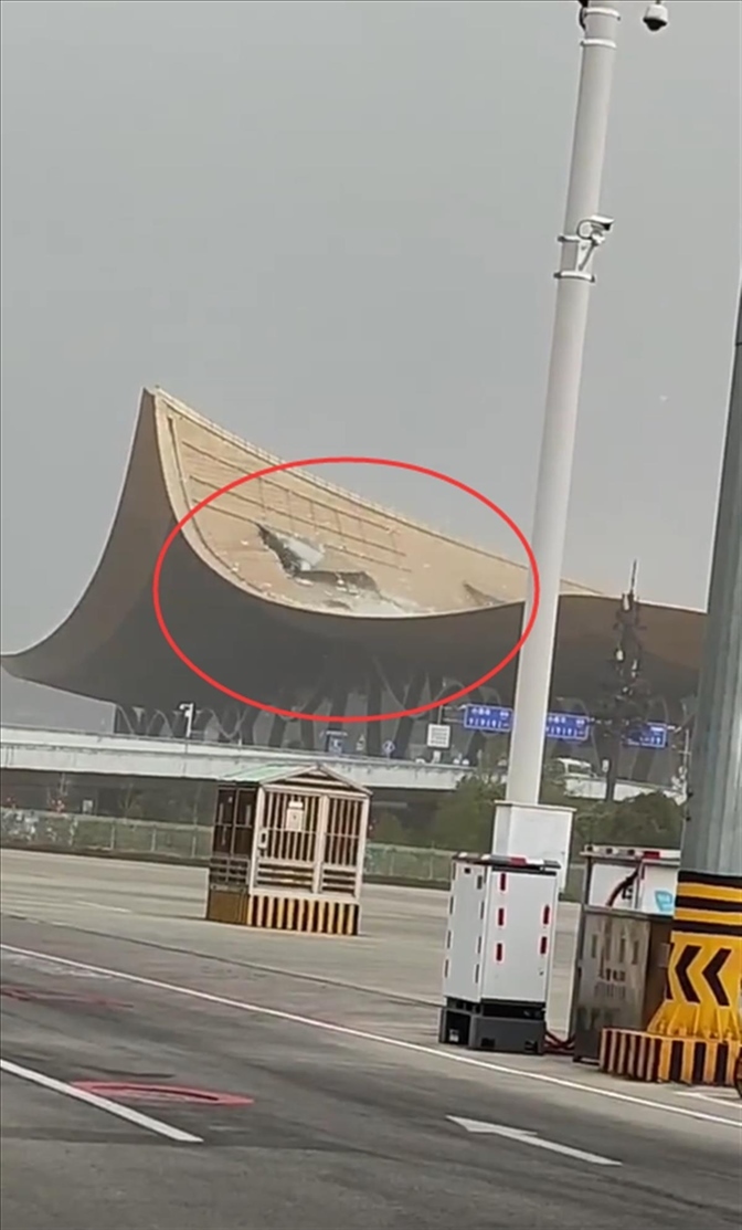 ·昆明機場航站樓屋頂外層被大風掀起,官方回應:無人員傷亡,航班正常運行。