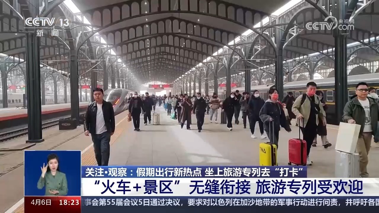 央視網(wǎng)消息:清明春花放,踏青好時節(jié)。坐著火車去旅行,縱跨千山,橫飛萬水,用速度與激情串聯(lián)美景。今年清明假期第一天也就是4月4日,全國鐵路發(fā)送旅客1853.6萬人次,創(chuàng)今年以來單日旅客發(fā)送量新高。以網(wǎng)紅城市、網(wǎng)紅景區(qū)為目的地的客流增幅明顯,各地增開的臨客列車也瞄準(zhǔn)了游客“打卡地”。坐上旅游專列去旅行,可以給移步換景的美好出游心愿帶來多少種可能呢?進(jìn)入今天的關(guān)注觀察。