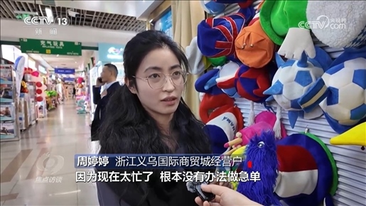 5%是今年一季度我國(guó)的進(jìn)出口增速。外貿(mào)開局有力、起勢(shì)良好。在浙江義烏國(guó)際商貿(mào)城,你能直觀感受到貿(mào)易回暖的跡象。7月份,即將在巴黎舉辦的奧運(yùn)會(huì)給義烏帶來了商機(jī),商家已經(jīng)提前接到了不少訂單。