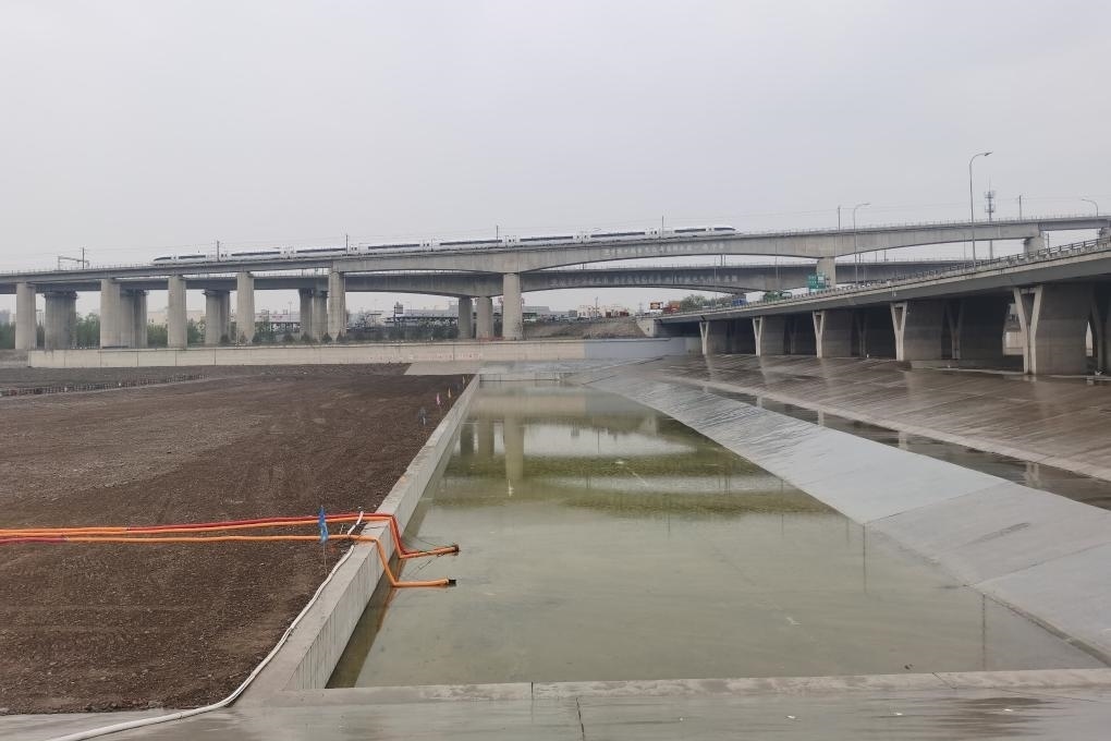 圖為北京大寧調蓄水庫水毀修復工程新建的消力池。新華社記者 劉詩平 攝