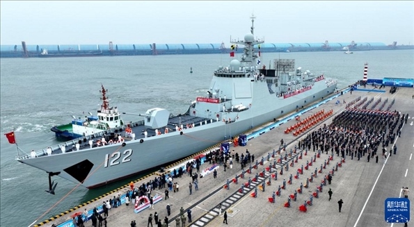 全國(guó)多地以多種形式慶祝人民海軍成立75周年,海軍組織“戰(zhàn)艦回家鄉(xiāng)”活動(dòng),唐山艦靠泊河北省唐山市。