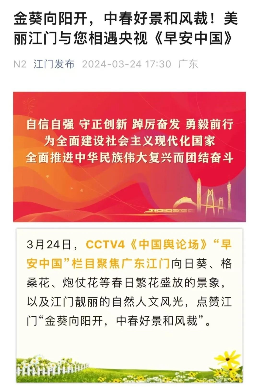 “《早安中國(guó)》入人心,美麗河山春色濃。”