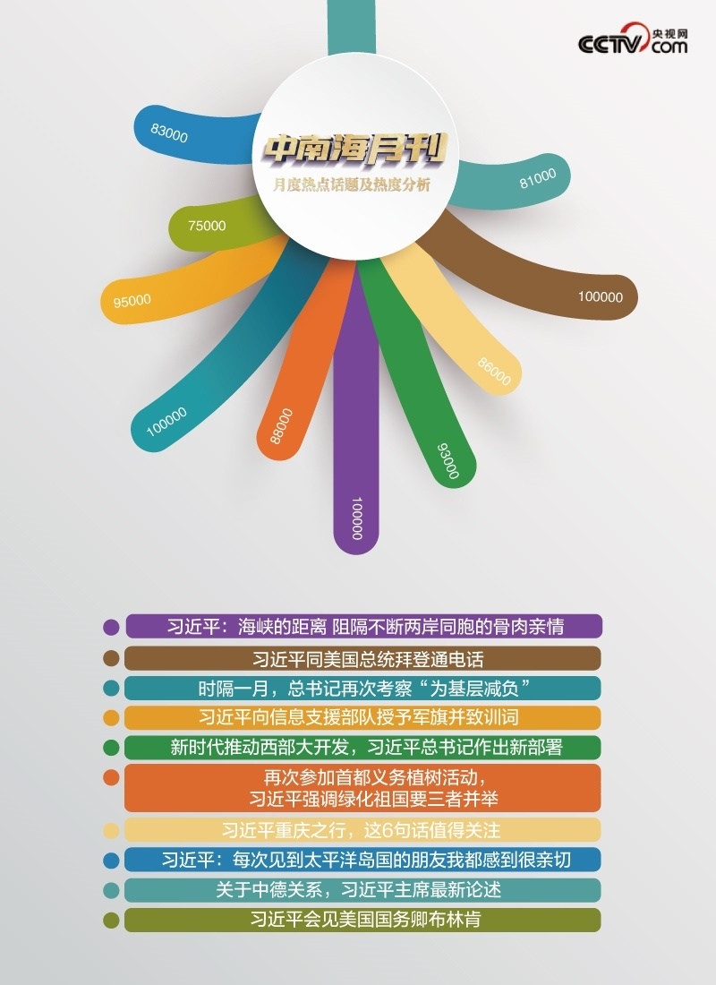 央視網(wǎng)“智聞”系統(tǒng)提取分析2024年4月全網(wǎng)時政新聞熱點顯示,“時隔一月,總書記再次考察‘為基層減負’”“習(xí)近平向信息支援部隊授予軍旗并致訓(xùn)詞”“習(xí)近平同美國總統(tǒng)拜登通電話”等話題備受關(guān)注。