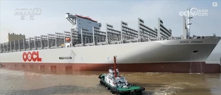 央視網(wǎng)消息:5月7日,又一艘全球最大裝箱量級(jí)的集裝箱船在海事部門(mén)的護(hù)航下,從長(zhǎng)江江蘇南通段出江試航。此次,試航集裝箱船長(zhǎng)399.99米、寬61.3米,滿(mǎn)載時(shí)相當(dāng)于240多列火車(chē)的裝載量。
