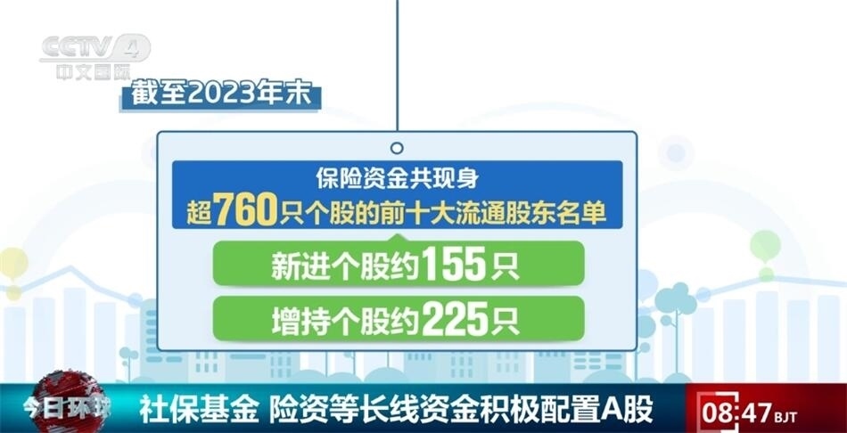 央視網(wǎng)消息:A股2023年年報(bào)日前披露結(jié)束,上市公司的前十大流通股東情況顯示,包括社保基金、保險(xiǎn)資金、合格境外機(jī)構(gòu)投資者等在內(nèi)的長線資金入市步伐正在不斷加快,A股中長期投資力量不斷壯大。