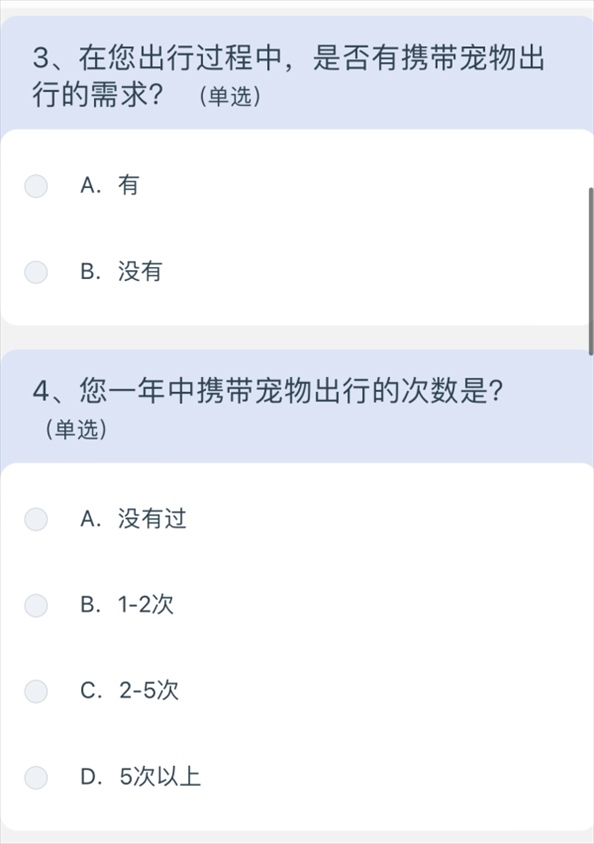 問(wèn)卷涉及寵物運(yùn)輸服務(wù)定價(jià)、非養(yǎng)寵人士建議等