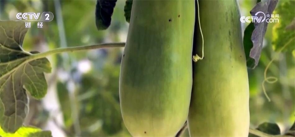 新品甜瓜好吃又好賣,例如黃金25就是張愛英家賣的最好的甜瓜,在這樣一根瓜藤上,一茬兒只能生長(zhǎng)一個(gè)瓜,一個(gè)產(chǎn)季能產(chǎn)出三茬兒瓜,一茬兒比一茬更大。