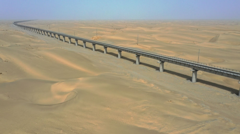 這是2022年5月19日拍攝的和若鐵路依木拉克特大橋(無(wú)人機(jī)照片)。新華社記者 丁磊 攝