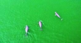 第二天上午,我們將兩頭江豚從故道運(yùn)送到長(zhǎng)江干流釋放。經(jīng)過(guò)1周的無(wú)線電監(jiān)測(cè)、聲學(xué)監(jiān)測(cè)和無(wú)人機(jī)影像觀察,我們確認(rèn)它們?cè)诟闪魃钫#⑴c野外江豚相聚。
