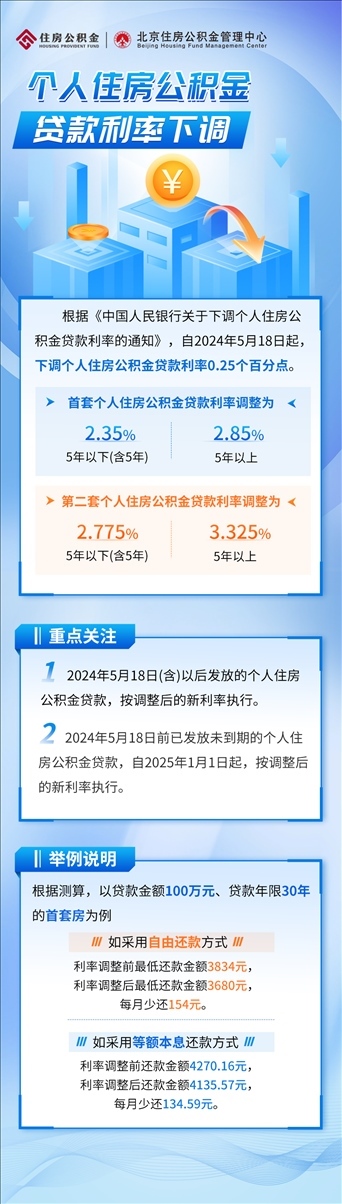 5月18日,北京住房公積金管理中心發(fā)布消息,5月18日起下調(diào)個(gè)人住房公積金貸款利率0.25個(gè)百分點(diǎn)