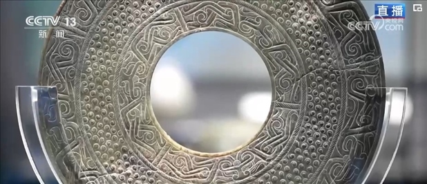 通過8K超高清攝像機(jī)可以清晰看到,鎮(zhèn)館之寶魯國大玉璧的紋飾區(qū)域多達(dá)3層,內(nèi)圈和外圈是象征權(quán)力的龍紋,中間這一圈是象征五谷豐登的谷紋。玉璧是祭天的禮器,作為戰(zhàn)國時(shí)期形制最大的玉璧,它充分展現(xiàn)了魯國對禮制和農(nóng)業(yè)的重視。