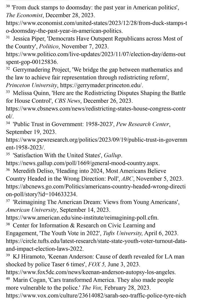 政府公信力繼續(xù)下跌。美國廣大普通民眾對(duì)聯(lián)邦以及各級(jí)政府極度失望,多數(shù)認(rèn)為美國正處于錯(cuò)誤的發(fā)展方向。皮尤研究中心的調(diào)查數(shù)據(jù)顯示,美國民眾對(duì)聯(lián)邦政府的信任度長期處于歷史低位,2023年僅為16%。(注34)蓋洛普民調(diào)機(jī)構(gòu)逐月調(diào)查的結(jié)果顯示,2023年1月至12月,有76%至81%的美國民眾對(duì)國家發(fā)展態(tài)勢(shì)表示不滿意。(注35)此外,76%的美國人認(rèn)為自己國家正處于錯(cuò)誤的發(fā)展方向,認(rèn)為美國處于正確發(fā)展方向者僅為23%。(注36)美國年輕群體對(duì)民主政治實(shí)踐普遍不滿。根據(jù)美利堅(jiān)大學(xué)政治經(jīng)濟(jì)研究所2023年的調(diào)查,18歲至34歲受訪者中,48%的人認(rèn)為美國政治制度更多地阻礙他們實(shí)現(xiàn)美國夢(mèng)。(注37)美國年輕人對(duì)政黨政治疏離,投票意愿不高。塔夫茨大學(xué)發(fā)布的研究顯示,2022年美國國會(huì)中期選舉中,全國范圍內(nèi)年輕選民的投票率僅為23%。(注38)