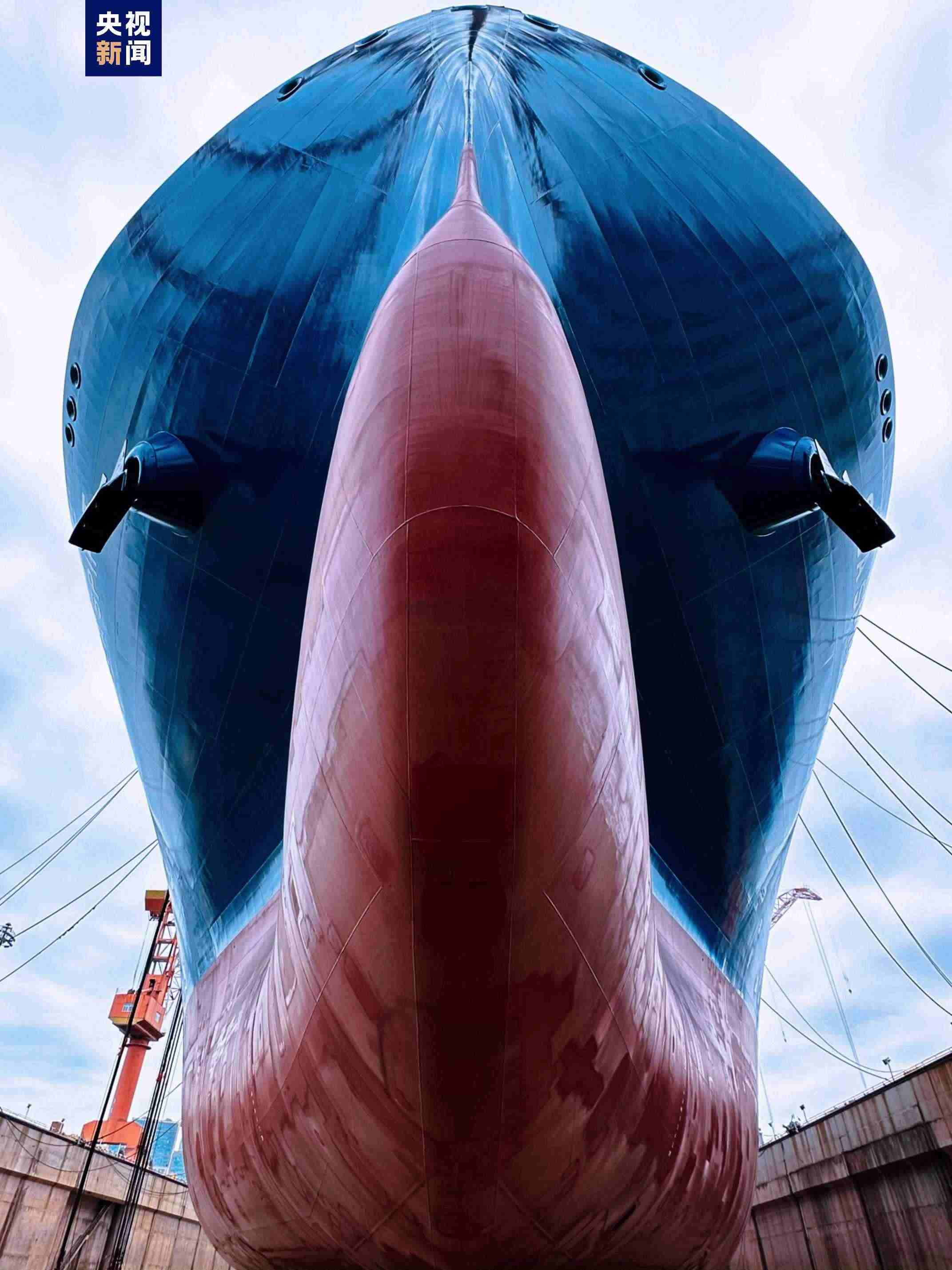 今天下水的LNG(液化天然氣)運輸船總長295米,型寬46.4米,貨艙總艙容17.5萬立方米,一次滿載運輸量能滿足整個大連市一個半月的使用需求,是世界上最主流的船型,可以??咳蚪^大多數(shù)的大型LNG岸站,具有極佳的適港性和船岸兼容性。