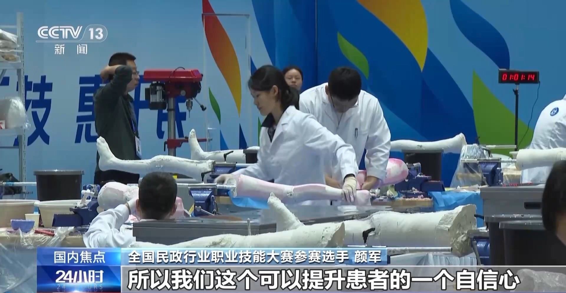 全國(guó)民政行業(yè)職業(yè)技能大賽參賽選手 畢珂磊:通過自己的雙手,讓殘疾人可以真正地站起來,看著他們能開心地走起來,我們從內(nèi)心感到非常高興。