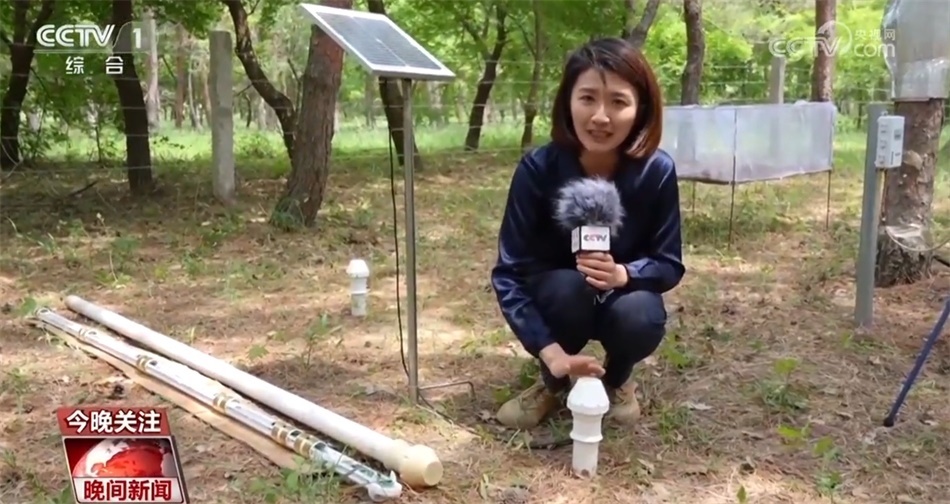 要了解樟子松的生長密碼,單靠監(jiān)測這一項是不夠的。在整個林子中,有十幾個設(shè)備都正在為這片樟子松林做著24小時不間斷的體檢。像這個2米長的大管子,像一個體溫計,里面在不同深度安裝了6層傳感器。把它直接插到土壤中,就可以監(jiān)測出地塊土壤的濕度、溫度、鹽分、肥力等。