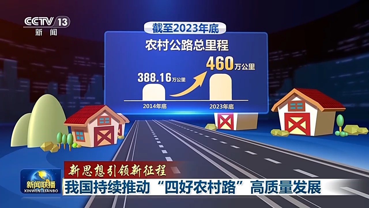 十年來,農村公路取得歷史性成就。累計投入農村公路建設資金達4.2萬億元,新改建農村公路約250萬公里,截至2023年底,農村公路總里程從2014年底的388.16萬公里增長到了460萬公里,農村公路覆蓋范圍、通達深度、管養(yǎng)水平、服務能力和質量安全顯著提高。