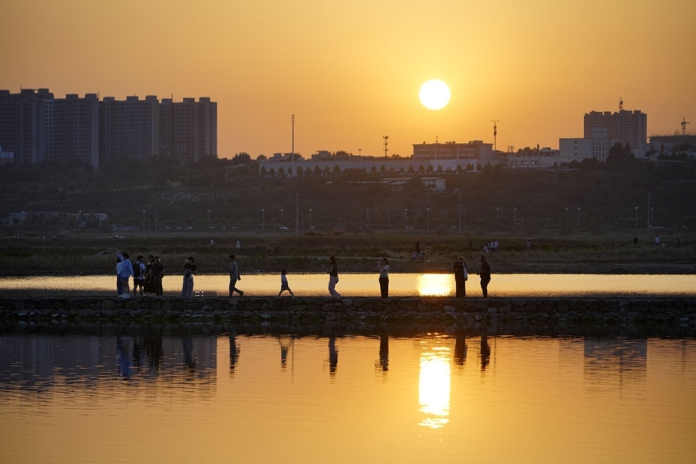 如今,漫步在鹽湖的環(huán)湖步道上,碧波蕩漾,風(fēng)景秀美,鹽湖逐漸成為人們親山親水親自然的好去處和打卡地。