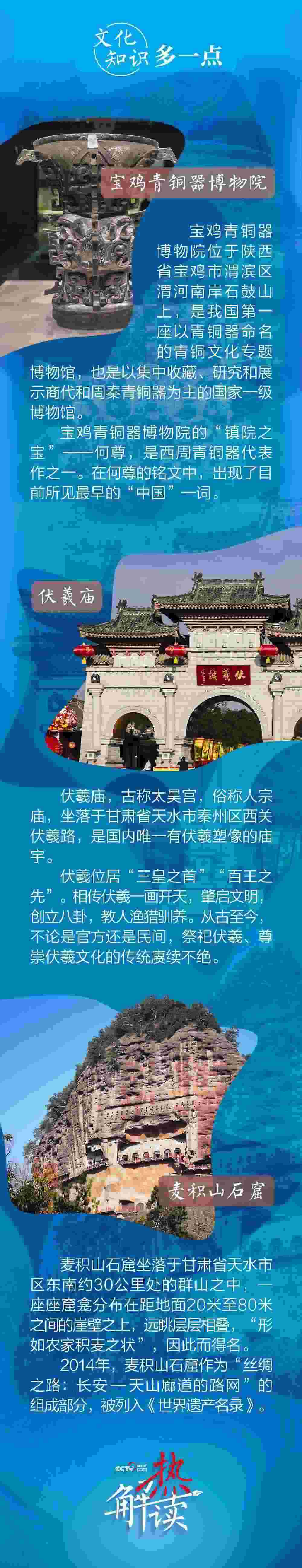 9月10日下午至11日上午,習近平總書記先后來到陜西省寶雞市和甘肅省天水市考察調(diào)研。此次陜甘行中,總書記專門考察了三處文化地標。