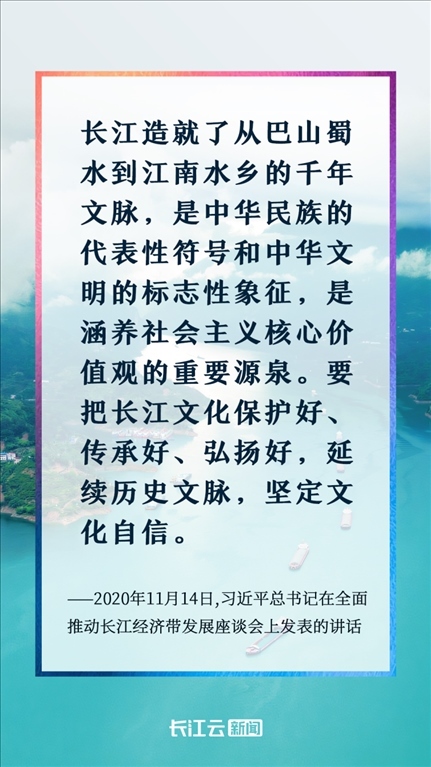 長(zhǎng)江之水萬(wàn)古奔流,千年文脈生生不息。黨的十八大以來(lái),習(xí)近平總書記高度重視長(zhǎng)江文化保護(hù)傳承弘揚(yáng),先后發(fā)表一系列重要講話,作出一系列重要指示批示,強(qiáng)調(diào)“要把長(zhǎng)江文化保護(hù)好、傳承好、弘揚(yáng)好,延續(xù)歷史文脈,堅(jiān)定文化自信”。