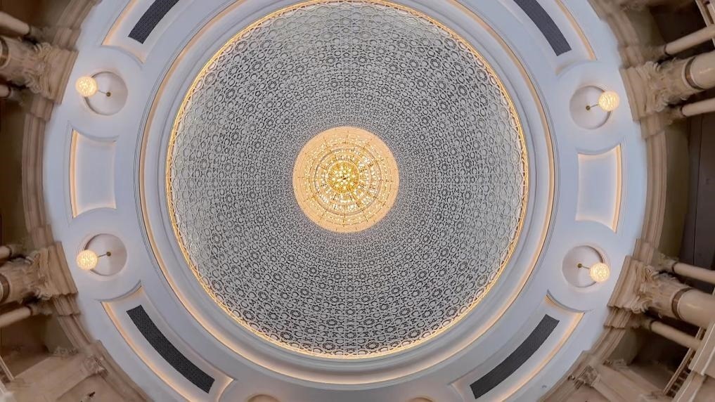 從圓形穹頂?shù)浇饘夔U空造型,塔吉克斯坦議會大樓體現(xiàn)了濃郁的塔吉克民族風格,也獲得當?shù)孛癖姷母叨瓤隙ā?/p>