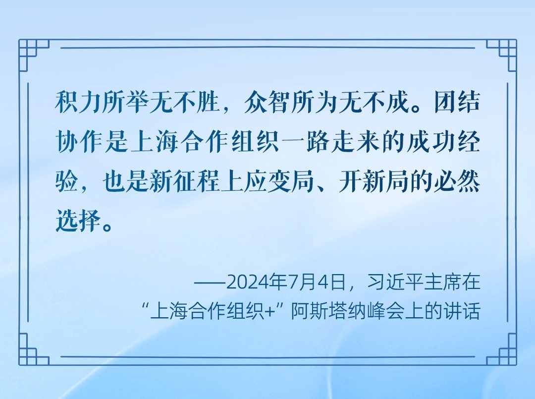 2024年至2025年,中國(guó)將接任上海合作組織輪值主席國(guó)。從聚焦地區(qū)安全拓展到推動(dòng)國(guó)家政治互信、合作發(fā)展,從建設(shè)惠及各國(guó)的基礎(chǔ)工程到促進(jìn)互利包容的經(jīng)濟(jì)全球化,中國(guó)將繼續(xù)為這條光明的“上合之路”貢獻(xiàn)力量和智慧。