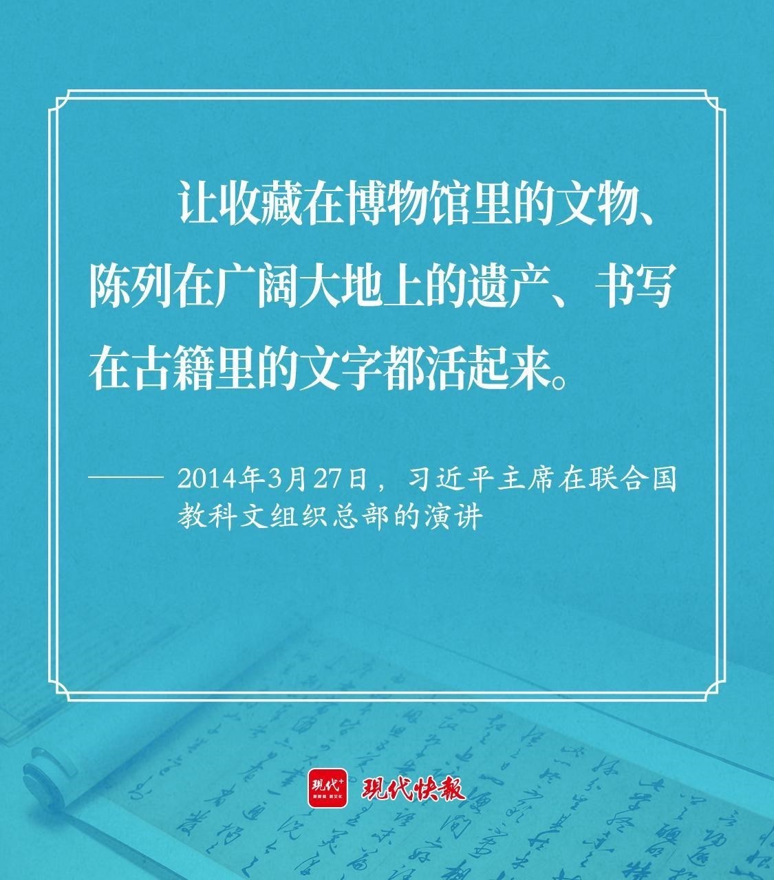 黨的十八大以來,習近平總書記多次強調,要系統(tǒng)梳理傳統(tǒng)文化資源,讓收藏在深宮里的文物、陳列在廣闊大地上的遺產、書寫在古籍里的文字都活起來。