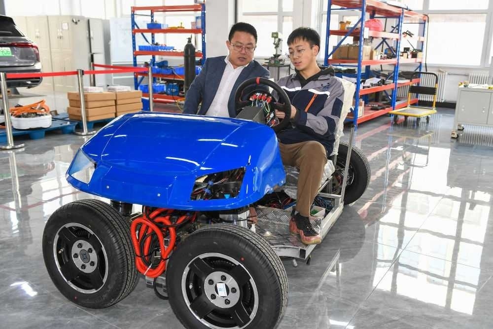 2024年3月13日,在吉林長(zhǎng)春一家汽車(chē)科技企業(yè),吉林大學(xué)汽車(chē)工程學(xué)院教授靳立強(qiáng)(左)試乘智能底盤(pán)樣車(chē)。2023年,長(zhǎng)春市科技局和吉林大學(xué)共建吉林大學(xué)概念驗(yàn)證中心,一手對(duì)接高校,一手對(duì)接企業(yè),確??蒲谐晒诩夹g(shù)路線(xiàn)和商業(yè)模式上的可行性,實(shí)現(xiàn)“從0到1”的轉(zhuǎn)化。