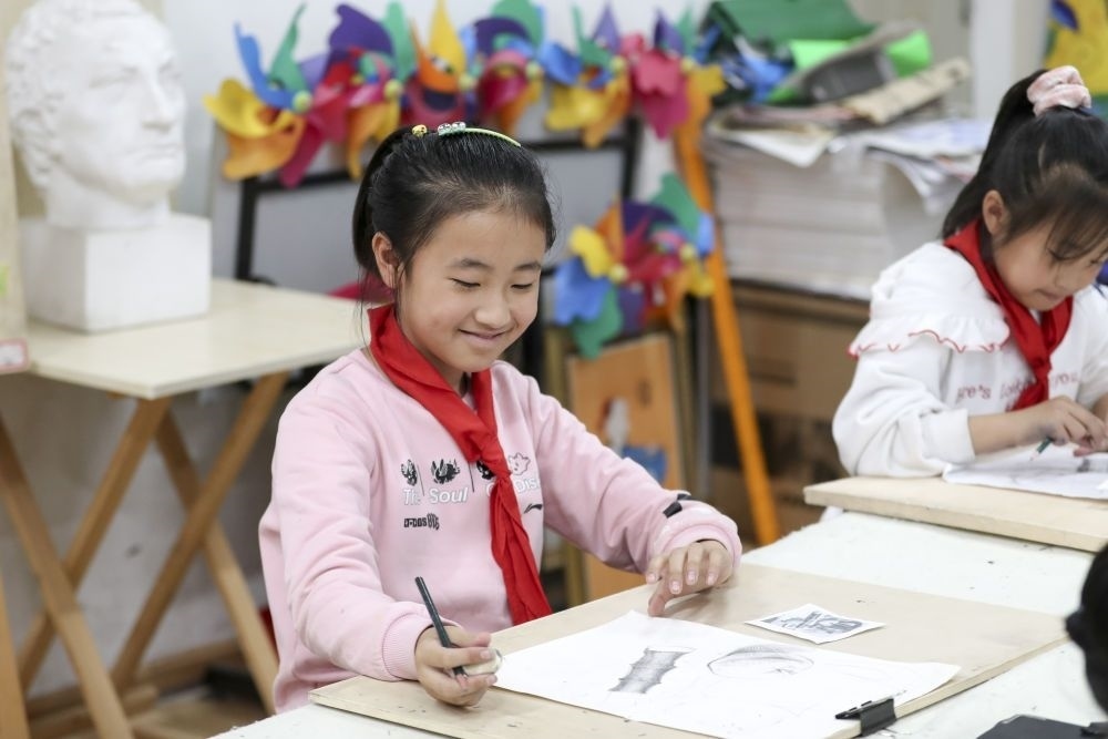 2021年10月27日,學(xué)生在黑龍江省哈爾濱市榆樹(shù)鎮(zhèn)中心校新鄉(xiāng)小學(xué)鄉(xiāng)村學(xué)校少年宮參加美術(shù)學(xué)習(xí)班。近年來(lái),黑龍江省各地以鄉(xiāng)村小學(xué)為基礎(chǔ),大力發(fā)展鄉(xiāng)村學(xué)校少年宮,開(kāi)設(shè)德育、文藝、體育、科普、手工等多種課外活動(dòng),滿(mǎn)足學(xué)生需求,培養(yǎng)孩子們的興趣愛(ài)好和特長(zhǎng)。