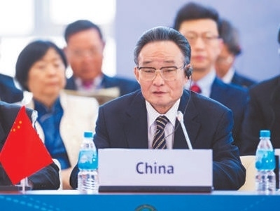 2013年1月28日,吳邦國同志在俄羅斯符拉迪沃斯托克出席亞太議會(huì)論壇第21屆年會(huì),并作題為《堅(jiān)持和平發(fā)展 促進(jìn)合作共贏》的主旨發(fā)言。新華社記者 王 曄攝