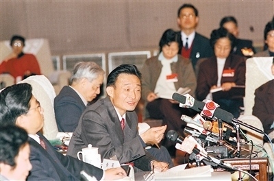 1994年3月,時(shí)任上海市委書記的吳邦國同志在全國兩會(huì)上海代表團(tuán)全團(tuán)會(huì)議上。新華社記者 劉建國攝