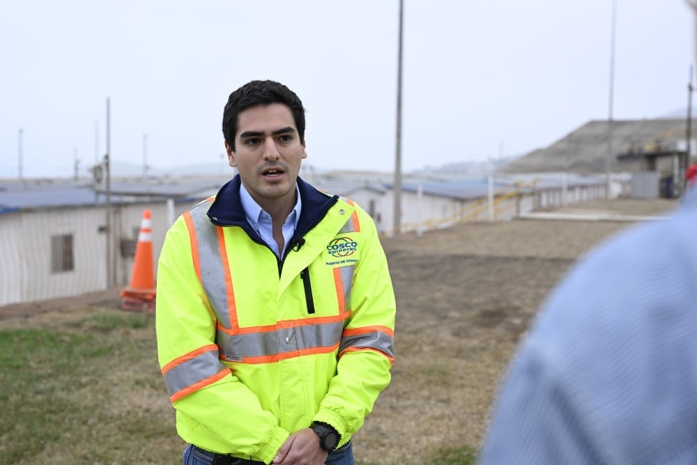 2024年6月21日,秘魯青年丹尼爾·哈雷斯在錢凱港項(xiàng)目現(xiàn)場接受媒體采訪。項(xiàng)目啟動之初,丹尼爾·哈雷斯還是一名剛?cè)肼殘龅膶?shí)習(xí)生,如今27歲的他已成長為項(xiàng)目工程部合同管理員。隨著錢凱港建設(shè)不斷推進(jìn),項(xiàng)目的工作崗位在當(dāng)?shù)爻蔀槟贻p人就業(yè)的熱門選項(xiàng)。