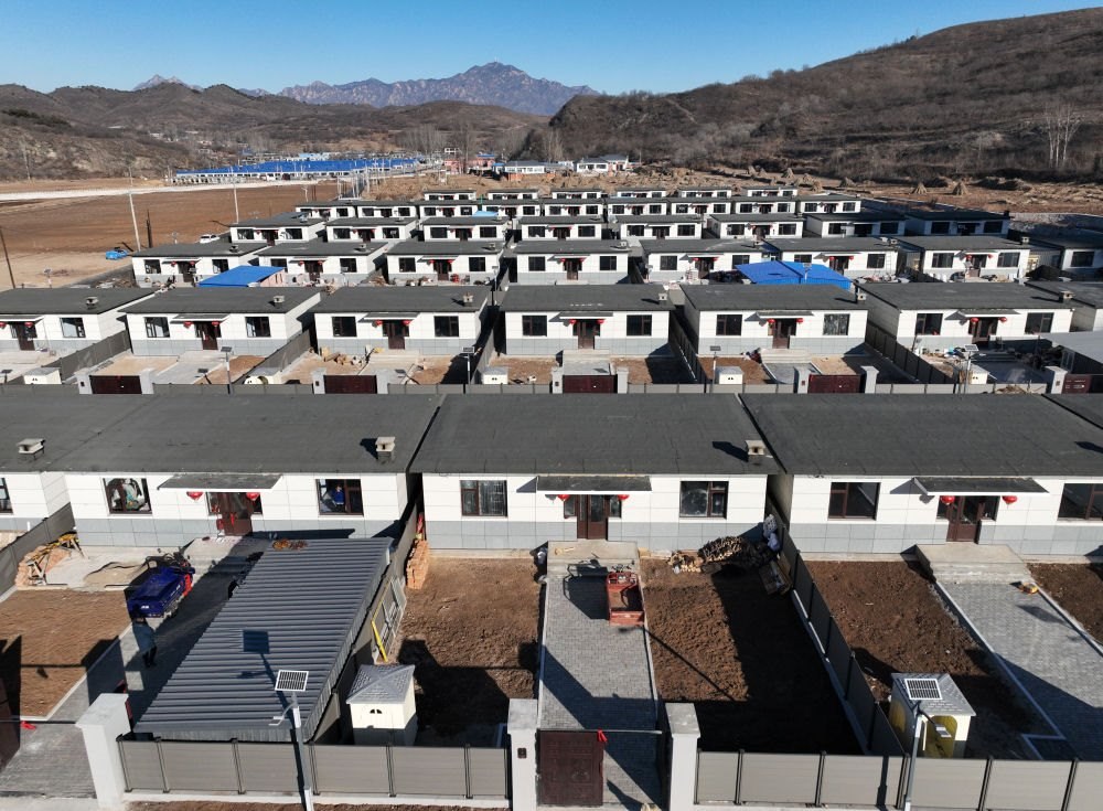 這是遼寧省葫蘆島市建昌縣黑山科鄉(xiāng)楊樹底下村的集中安置重建住房(2024年12月17日攝,無(wú)人機(jī)照片)。新華社記者 李鋼 攝