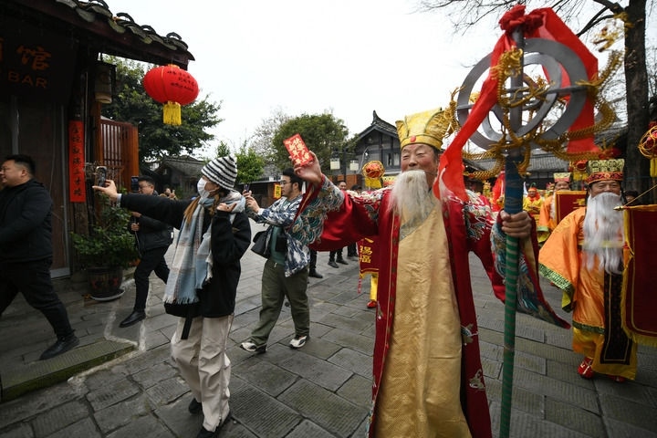 打坱塵、淘檐溝、掛年紅、搶銀水、看燈戲……在閬中古城過大年,來自天南地北的游客沉浸式感受中國年。