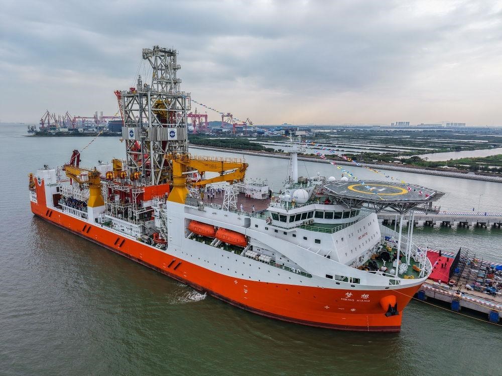 △2024年11月17日,靠泊在廣州海洋地質調查局科考碼頭的我國自主設計建造的首艘大洋鉆探船夢想號。
