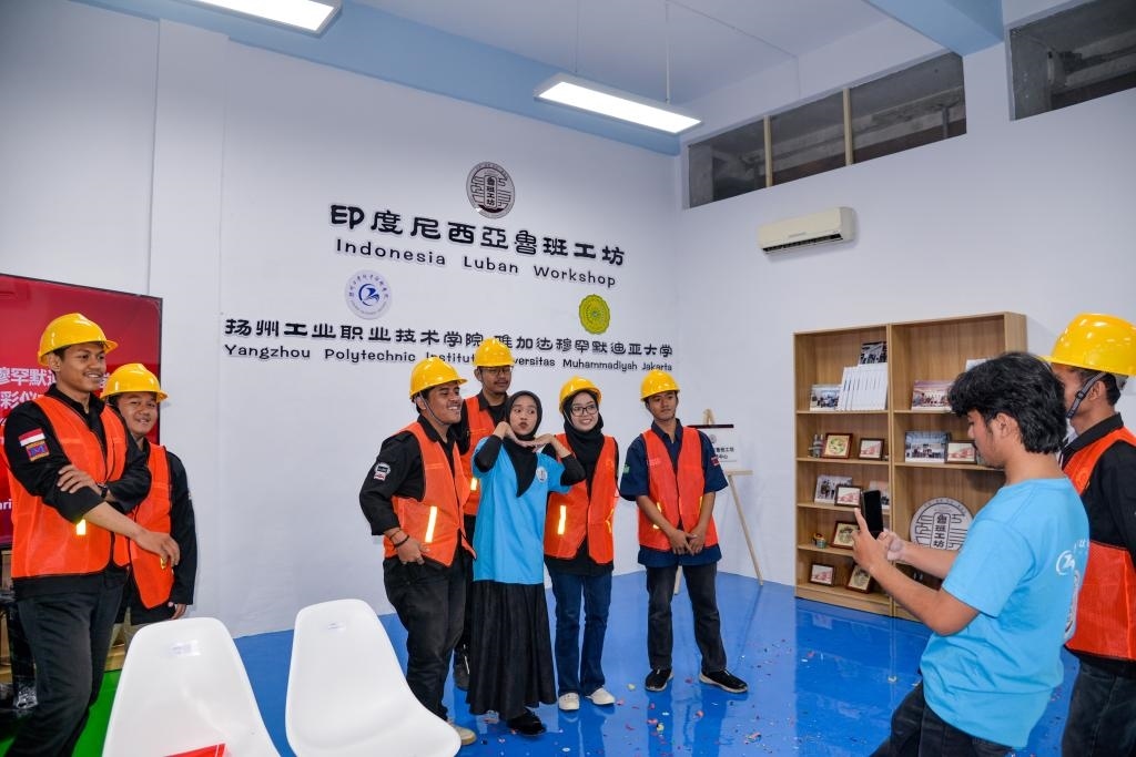 2月28日,在印度尼西亞雅加達,學(xué)生在印尼魯班工坊智能制造中心揭牌剪彩儀式后合影。新華社記者 徐欽 攝